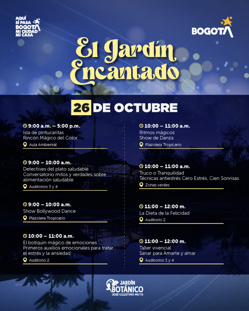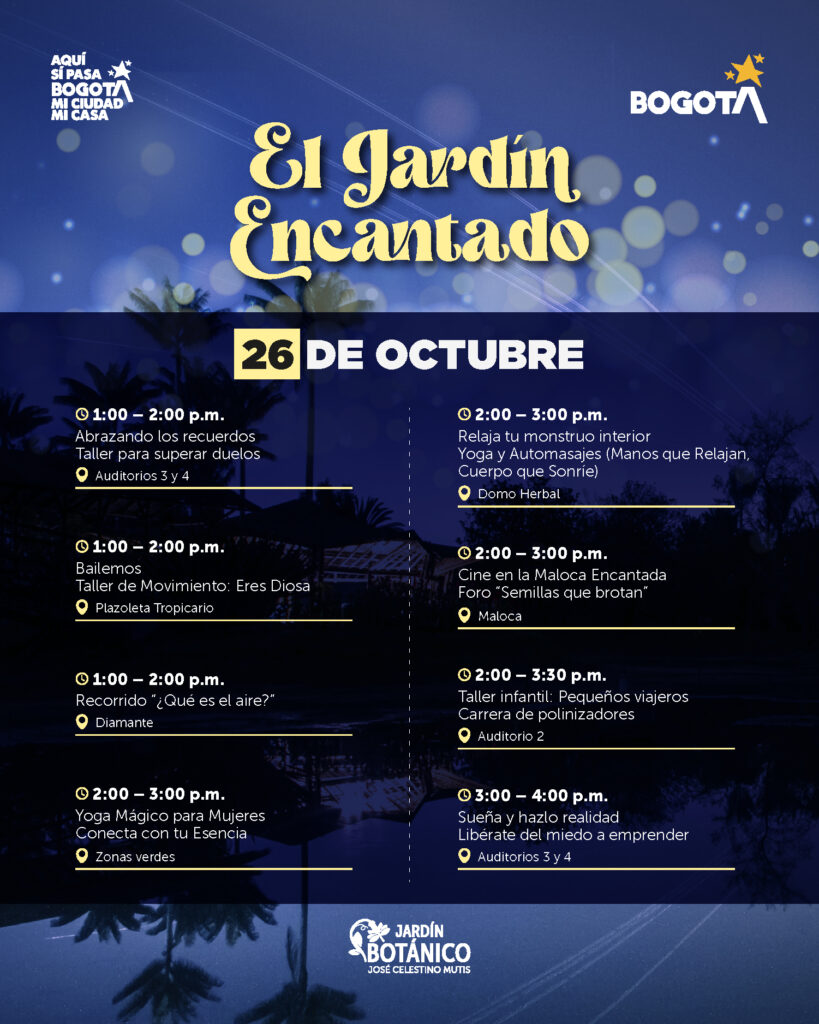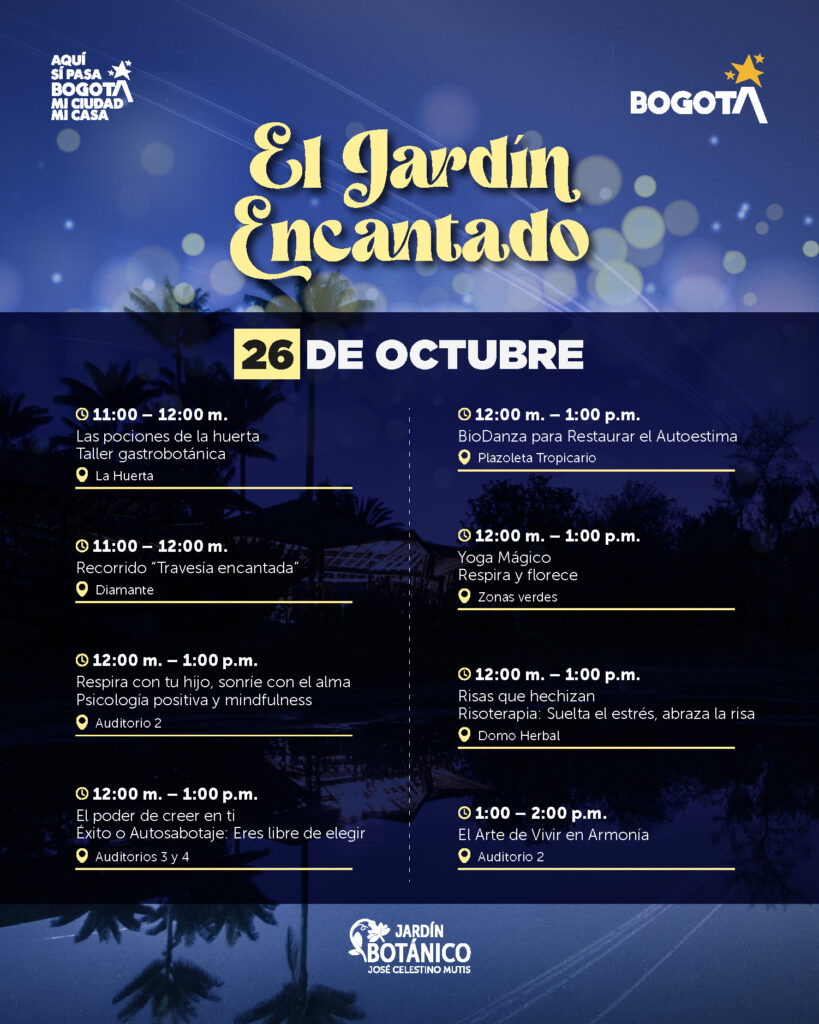 Este domingo 26 de octubre, el Jardín Botánico José Celestino Mutis se llenará de color, imaginación y naturaleza con El Jardín Encantado, un evento creado especialmente para que los niños y niñas vivan una experiencia única entre flores, plantas y diversión.