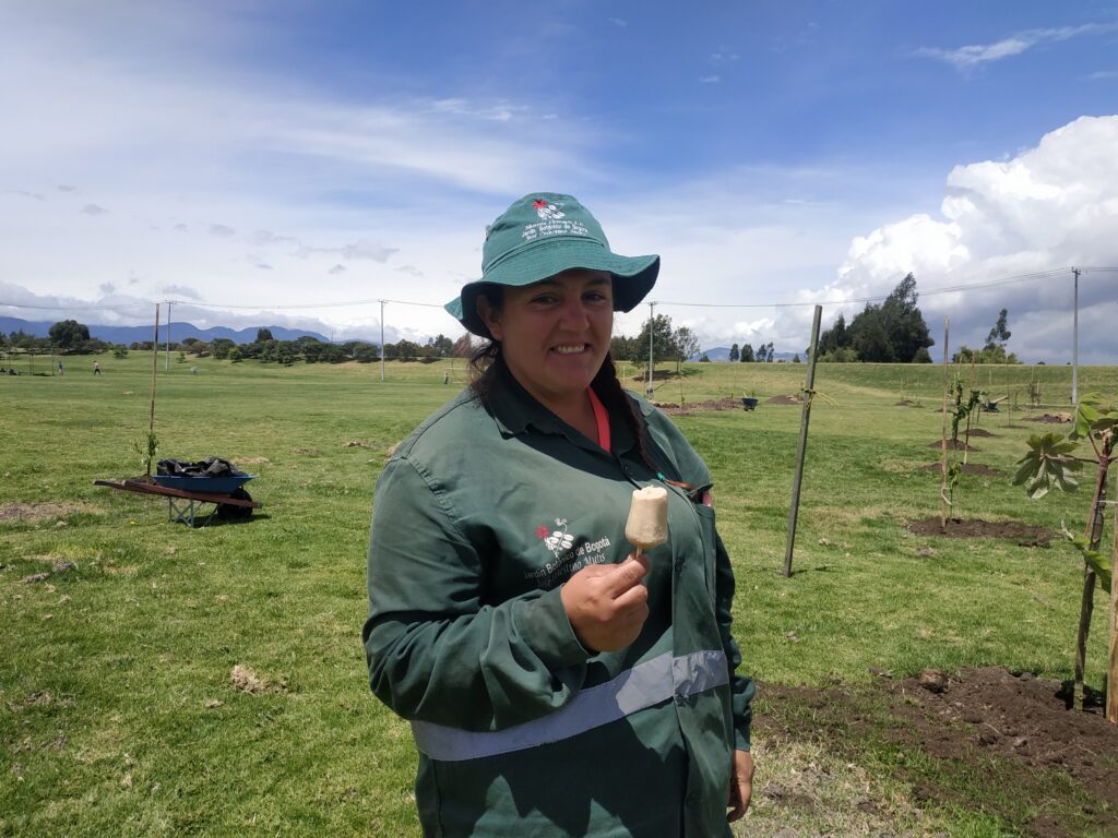 Las vueltas de la vida la llevaron a Bogotá, ciudad donde conformó una familia en el barrio Patio Bonito, en el sur de la ciudad. “Llevo varios años como operaria del Jardín Botánico de Bogotá (JBB). Mi trabajo consiste en reverdecer la capital con nuevos árboles de diferentes especies”.